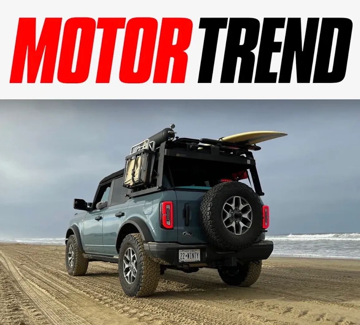 Carrying a long object like a surfboard is tricky, even in a four-door Bronco, but 22 Winty has innovated with a tilting cargo rack. We know what you're thinking: If you have something long to carry in your Ford Bronco four-door, you can just put the middle seats down. While that's a great solution, what if those...